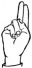 На ћирилици написано КОСТАДИН ИЊАЦ састоји се из 12 слова [?]. Исписано ћириличном једноручном азбуком за глувонеме: